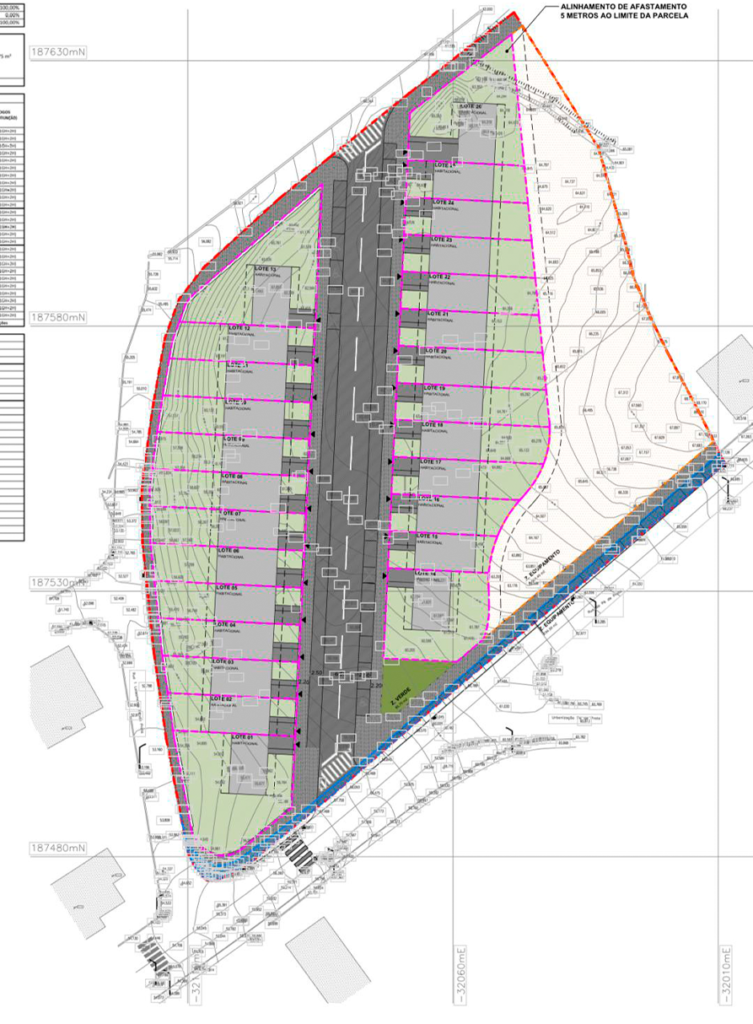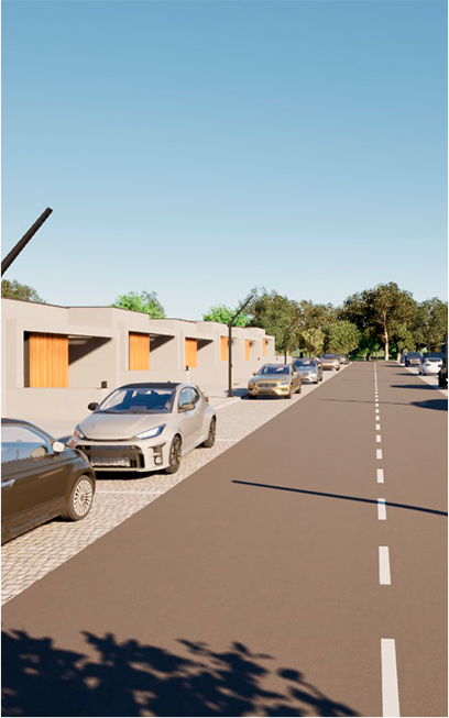 Este empreendimento é composto por 26 moradias térreas de tipologias T2, T3 e T4, organizadas ao longo de uma rua exclusiva.